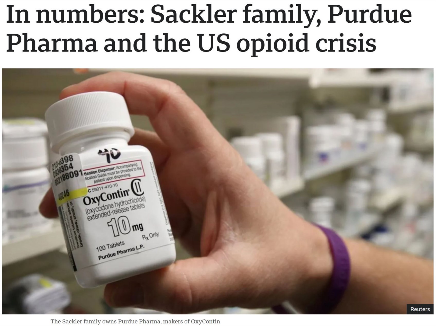 普渡制藥公司最終與美國(guó)司法部達(dá)成83億美元和解協(xié)議,對(duì)其阿片類止痛藥奧施康定遭到的三項(xiàng)重罪指控表示認(rèn)罪。和解協(xié)議還要求普渡制藥公司解體并轉(zhuǎn)型為一家新的提供成癮和過(guò)量治療藥物的公司。另外,普渡制藥公司的所有者薩克勒家族同意支付2.25億美元的民事責(zé)任賠償金。