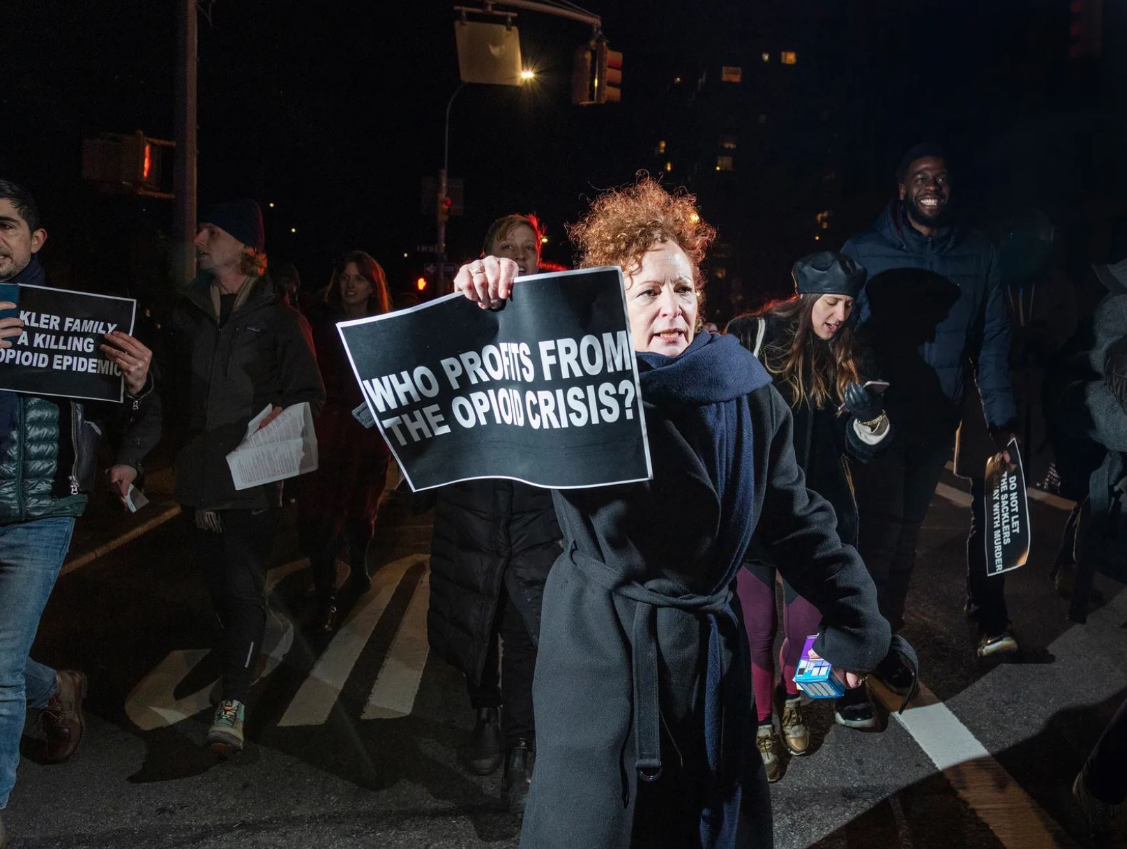 2018年,南·戈?duì)柖≌偌嗽S多跟她一樣的藥物成癮受害者,成立了藥物干預(yù)組織“疼痛”。在幫助飽受藥物成癮摧殘的人們走出泥潭的同時(shí),也組織他們針對(duì)與薩克勒家族有合作的博物館發(fā)起一系列的抗議活動(dòng)。