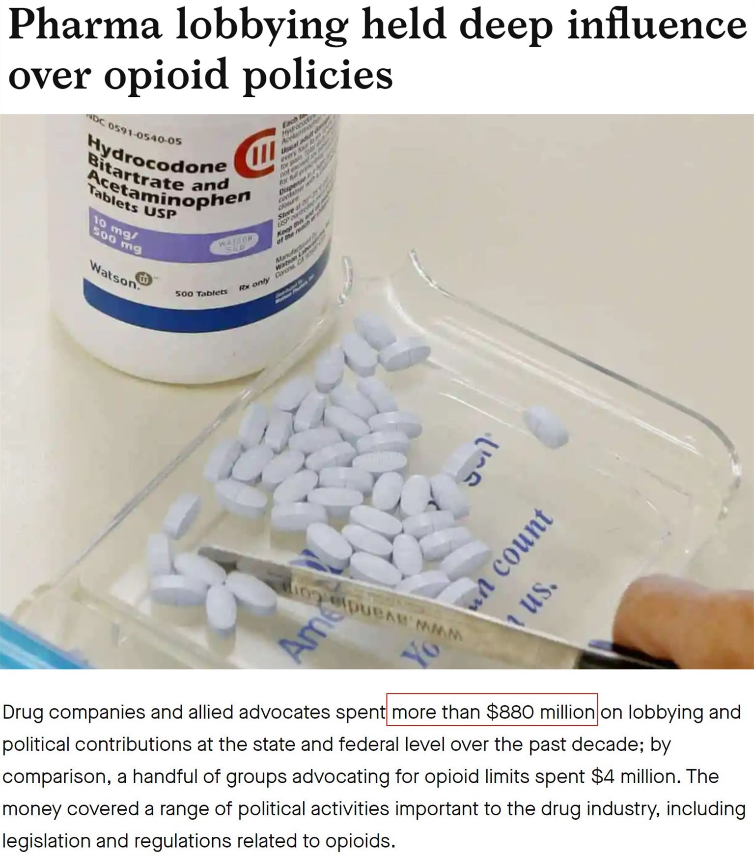 △美國(guó)公共誠(chéng)信中心網(wǎng)站報(bào)道:阿片類藥物制造商和經(jīng)銷商10年內(nèi)花費(fèi)8.8億美元用于游說(shuō)和政治捐款,以阻止政府出臺(tái)相關(guān)限制措施。美國(guó)阿片類藥物危機(jī)專家克洛尼稱,這一花費(fèi)比美國(guó)槍支游說(shuō)集團(tuán)的游說(shuō)資金還要高8倍。