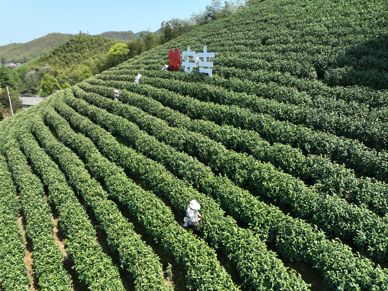 2024年4月9日,采茶工在安吉縣上墅鄉(xiāng)上墅村采摘白茶。圖源 新華社