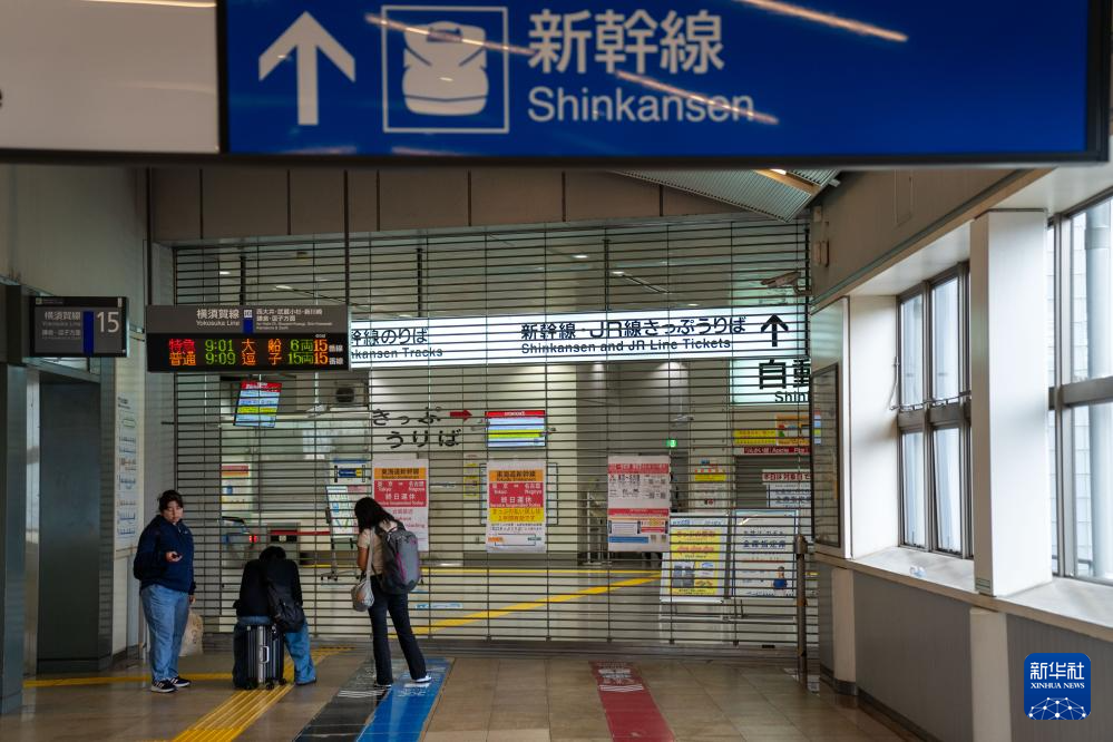 8月16日,乘客站在關(guān)閉的日本東京品川新干線站點旁。新華社記者 張笑宇 攝