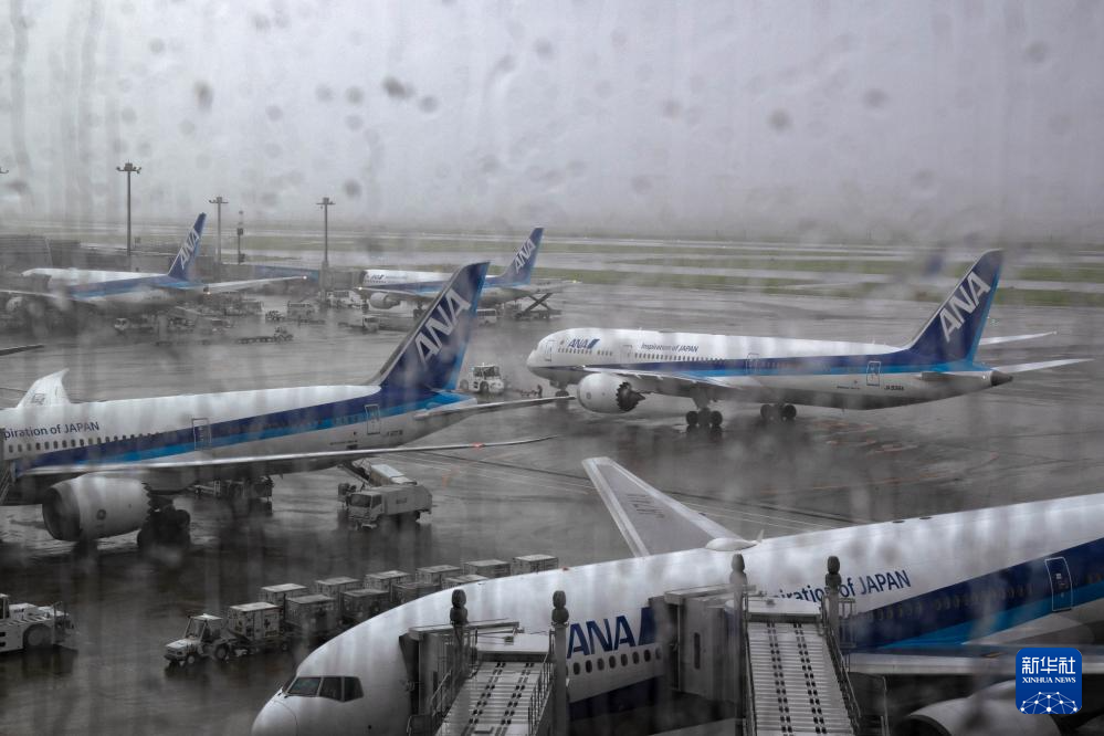這是8月16日在日本東京羽田機場拍攝的全日空航空公司客機。新華社記者 張笑宇 攝