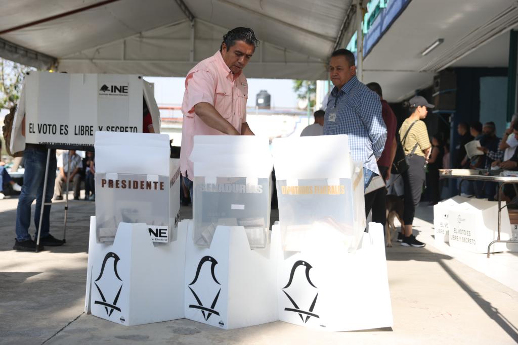 6月2日,在墨西哥首都墨西哥城,選民在一處投票站投票。新華社記者李夢馨攝