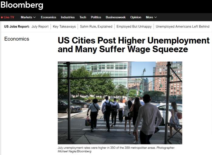 據(jù)報道,與2023年同期相比,389個大都會區(qū)中有350個的失業(yè)率在7月上升。在包括密爾沃基、明尼阿波利斯-圣保羅和舊金山等2010年普查人口數(shù)達到或超過100萬的八個大都會區(qū),2024年7月的就業(yè)人數(shù)低于2019年7月同期。