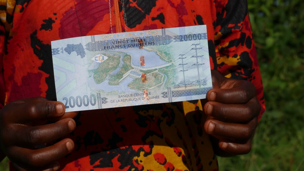 水電站的實際效果圖被印在面值2萬幾內(nèi)亞法郎紙幣背面。2023年9月7日攝。新華社記者鄭揚子攝