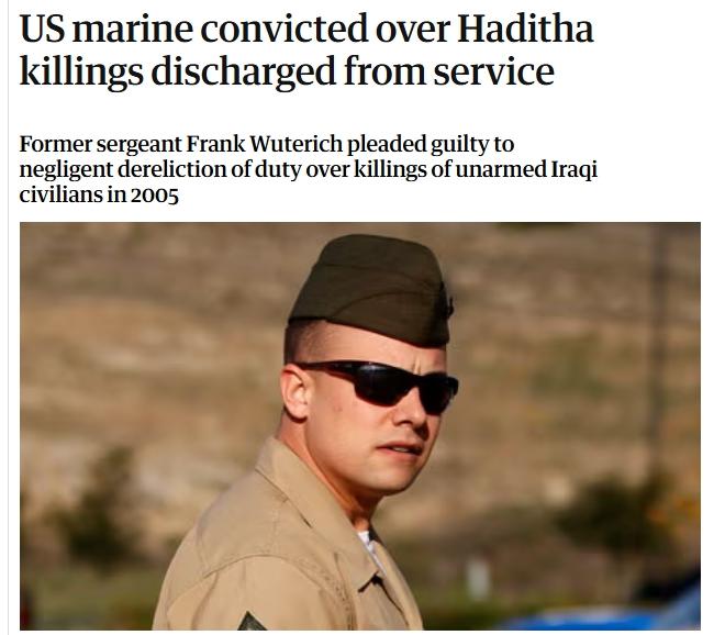 包括烏特里奇在內(nèi)的多名海軍陸戰(zhàn)隊員被指控犯有謀殺罪。然而,其中三起案件最終被駁回。烏特里奇則達成認罪協(xié)議,承認一項“疏忽失職”的罪名,軍銜降職并結(jié)束服役。