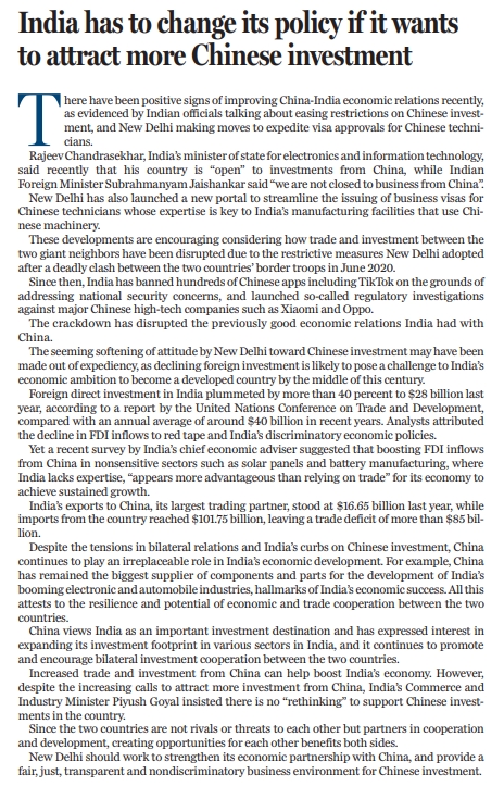 原標題:India has to change its policy if it wants to attract more Chinese investment