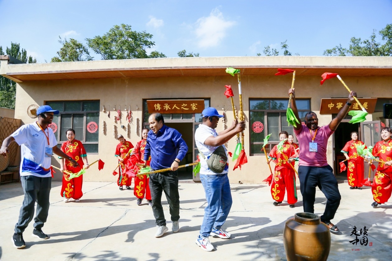據(jù)介紹,黃羊古落有兩項國家級非遺稱號:黃羊錢鞭和中寧蒿子面制作工藝,且黃羊錢鞭已成為村民鍛煉的一種方式。外國記者也在充滿激情的音樂中和村民一起舞動起來。津巴布韋國家電視臺總經(jīng)理喬納森·提納沃·馬瑞瓦對環(huán)球網(wǎng)記者談?wù)撈饘τ邳S羊前鞭的感受,他說:“它非常完美,我的家鄉(xiāng)也有很多舞蹈,但與這里的不同。我喜歡這種形式的舞蹈,步伐統(tǒng)一,表現(xiàn)出了與眾不同的活力?!蓖瑫r,喬納森強調(diào)了黃羊錢鞭這類非物質(zhì)文化遺產(chǎn)的重要性:“這類舞蹈保持了文化的完整性。它歷史悠久,流傳至今,也將延續(xù)到未來。它讓這種蓬勃的生命力會一直存在于孩子們的記憶里?!?/p>