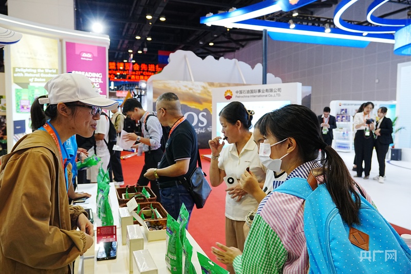 參展觀眾品嘗阿聯(lián)酋特產(chǎn)椰棗(央廣網(wǎng)見習(xí)記者 覃亞菲 攝)