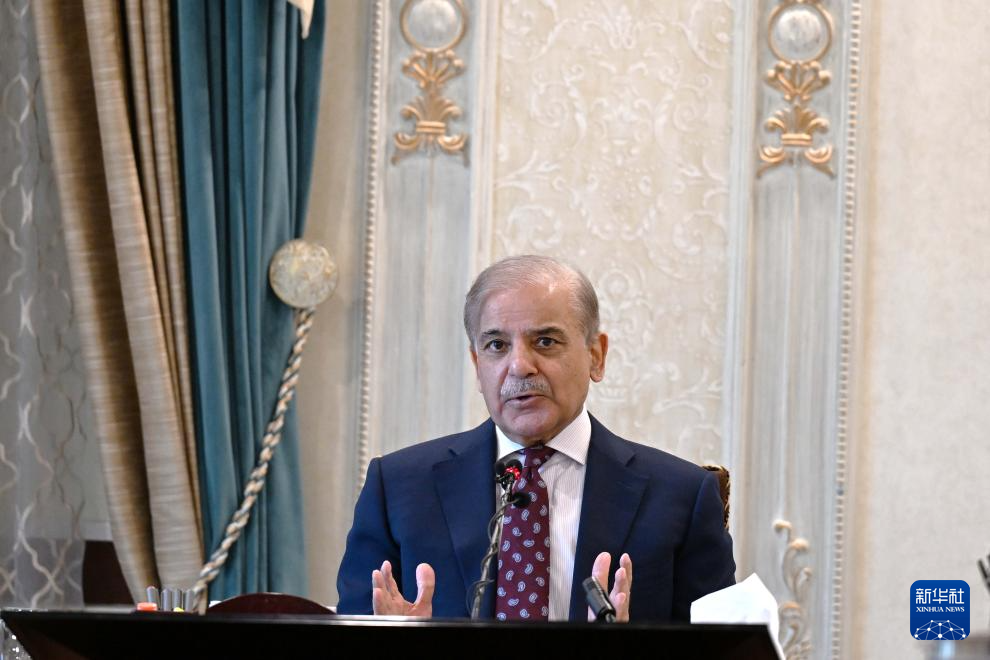 10月2日,巴基斯坦總理夏巴茲·謝里夫在伊斯蘭堡接受媒體采訪。新華社發(fā)(艾哈邁德·卡邁勒攝)