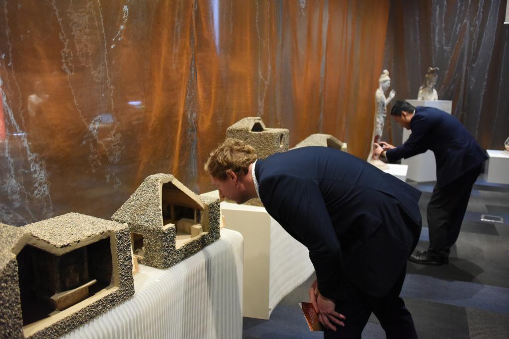 新中友協(xié)奧克蘭分會副主席利奧·德·格拉夫在VR展臺體驗數(shù)字化還原的莫高窟第285窟后,表達了自己“要去一次敦煌”的愿望。新西蘭國會議員珍妮·薩萊薩穿過莫高窟第3窟的復制洞窟,感嘆“真切體會到美與文化之間的相互關(guān)聯(lián)”。