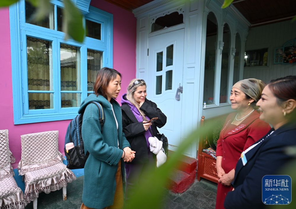 10月15日,與會(huì)嘉賓在伊寧市喀贊其民俗旅游區(qū)參訪。 新華社記者 劉續(xù) 攝