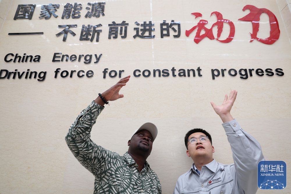 10月15日,與會(huì)嘉賓在國家能源集團(tuán)龍?jiān)赐卖敺履茉从邢薰緟⒃L時(shí)與工作人員交流。 新華社記者 李明 攝