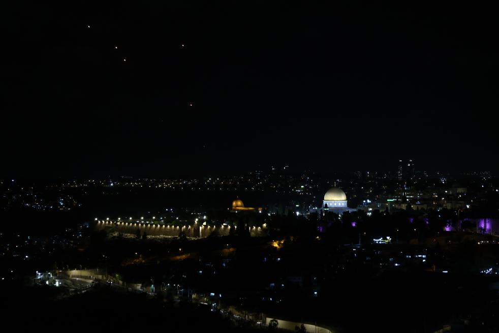 10月1日,伊朗發(fā)射的導(dǎo)彈從耶路撒冷上空飛過。新華社發(fā)(賈馬爾·阿瓦德攝)