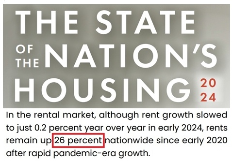 哈佛大學(xué)住房研究聯(lián)合中心今年早些時(shí)候發(fā)布的《2024年美國(guó)住房狀況報(bào)告》顯示,自2020年初以來(lái),美國(guó)的房屋租金水平已經(jīng)上漲了26%。以2022年為例,約一半的租房家庭將超過(guò)30%的收入用于支付房屋租金和生活費(fèi)用。