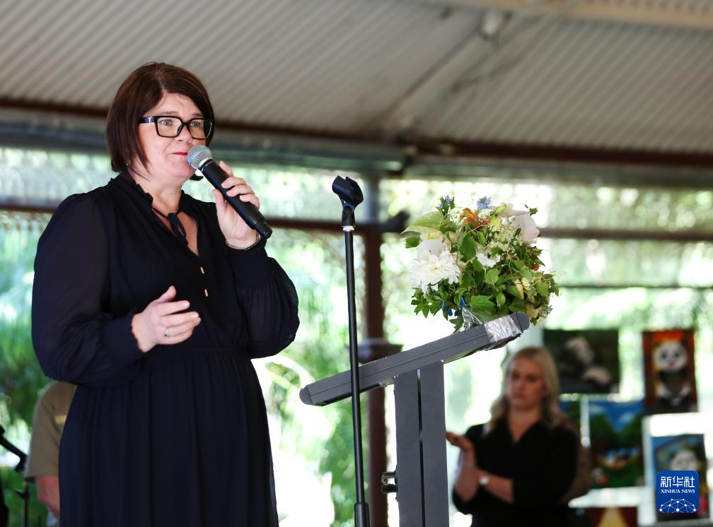 11月14日,在澳大利亞阿德萊德動物園,南澳大利亞州旅游與多元文化部長佐伊·貝蒂森在歡送活動上致辭。新華社記者 馬平 攝