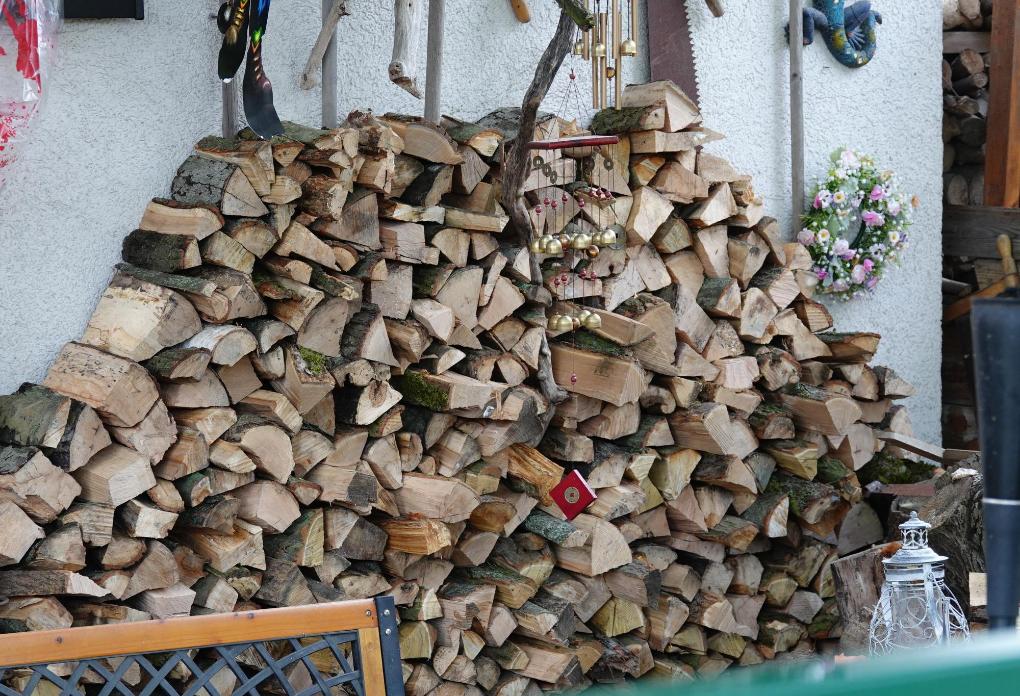 這是2022年11月1日在德國首都柏林拍攝的一戶居民儲存的木柴。新華社記者任鵬飛攝