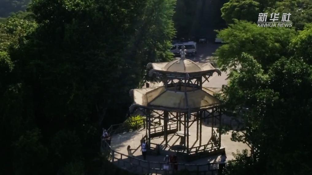 在科爾科瓦多山上的蒂茹卡國家公園里,有一座玲瓏別致的中式?jīng)鐾?,八角飛檐上雕刻著色彩艷麗的飛龍。這座涼亭是里約地方政府為表彰華工在巴西用中國茶籽培育茶樹的功績而修建?,F(xiàn)在,中國亭已成為中巴兩國人民友誼的象征。