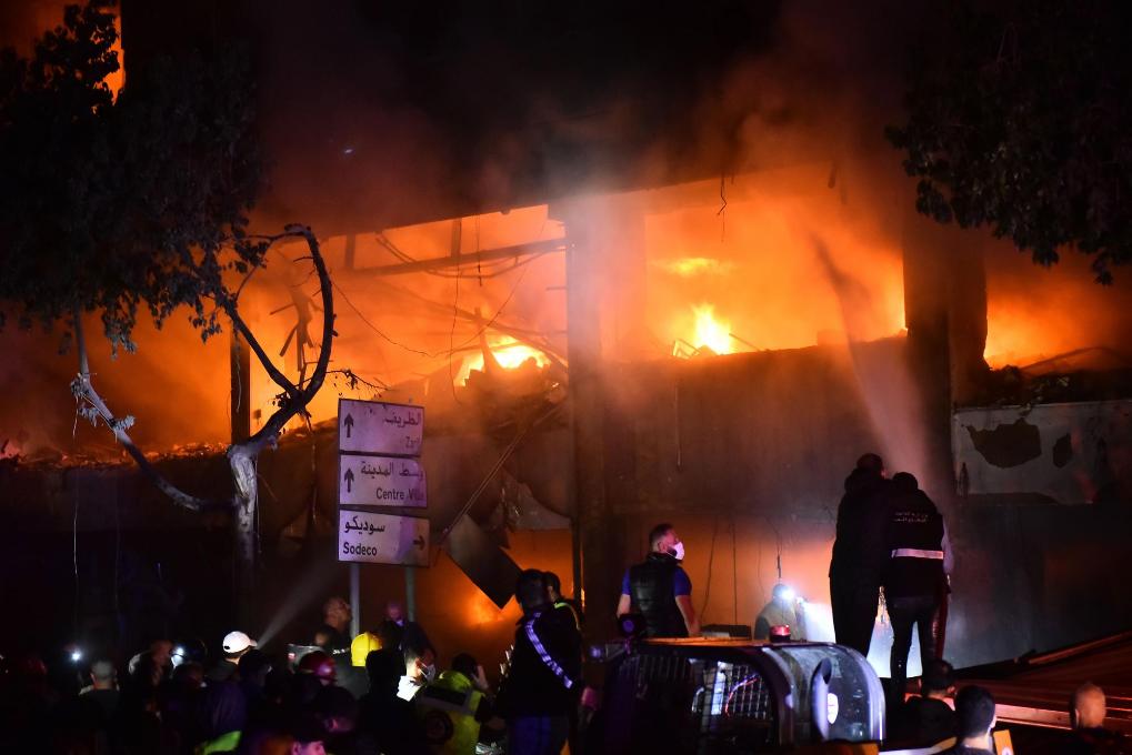 這是11月17日在黎巴嫩貝魯特拍攝的以軍襲擊造成的火災(zāi)。新華社發(fā)
