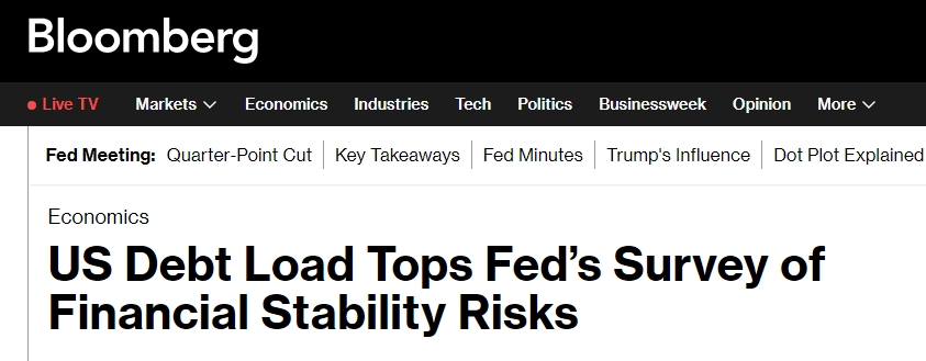 彭博社(Bloomberg)在報道中提到,美國政府的債務(wù)負擔(dān)現(xiàn)在被認(rèn)為是金融穩(wěn)定面臨的最大風(fēng)險,在美聯(lián)儲的一項調(diào)查中,其重要性超過了持續(xù)的通貨膨脹。逾半數(shù)受訪者(54%)認(rèn)為美國財政債務(wù)的可持續(xù)性是一個突出風(fēng)險,而半年前這一比例僅為40%。美聯(lián)儲的半年度金融穩(wěn)定報告寫道:“美國財政債務(wù)可持續(xù)性方面的擔(dān)憂位居榜首,其次是中東緊張局勢升級和政策的不確定性。”