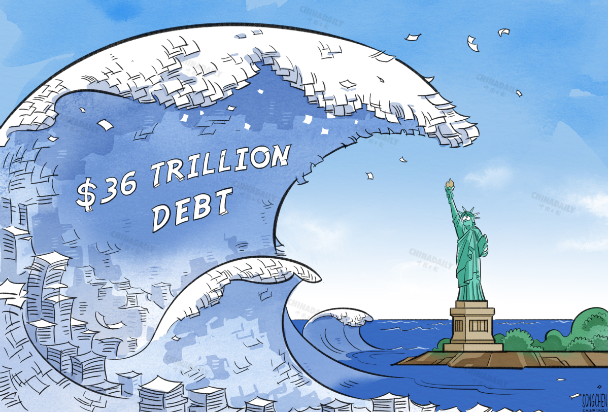 美國國債總額已突破36萬億美元,達到創(chuàng)紀(jì)錄的新高。(作者:中國日報 宋晨)