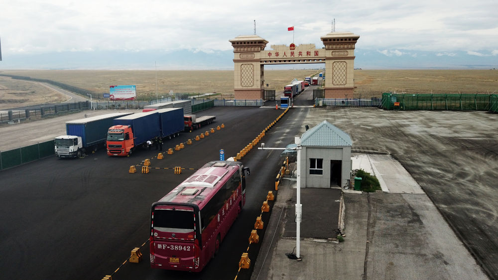 2024年7月15日,一輛國(guó)際客運(yùn)班車即將駛出國(guó)門,前往哈薩克斯坦(無(wú)人機(jī)照片)。新華社記者張嘯誠(chéng)攝