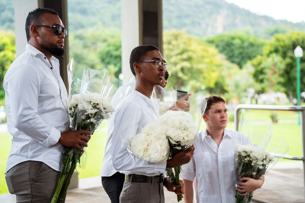1月9日,在巴拿馬首都巴拿馬城,人們準(zhǔn)備向紀(jì)念1964年“護(hù)旗運(yùn)動(dòng)”的“永恒之火”紀(jì)念碑獻(xiàn)花圈。新華社記者許詠政攝