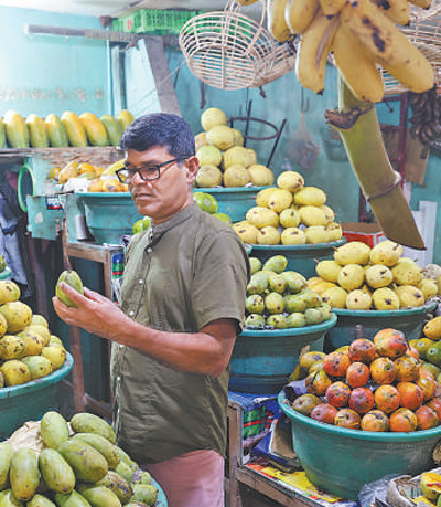 科倫坡市中心水果市場(chǎng),當(dāng)?shù)鼐用裾谶x購(gòu)新鮮水果。