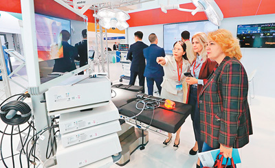 觀眾在白俄羅斯中白工業(yè)園舉行的2024中國(guó)醫(yī)學(xué)裝備(白俄羅斯)展覽會(huì)上參觀。 任科夫攝(新華社發(fā))