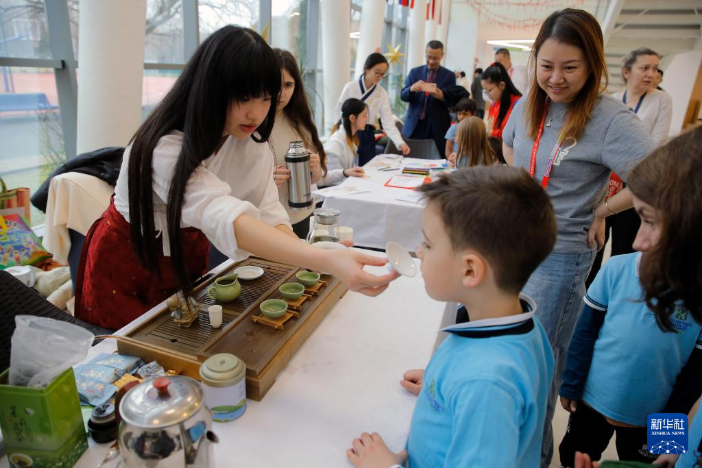 1月31日,在羅馬尼亞布加勒斯特國際學校,學生們參加中國文化體驗活動。新華社發(fā)(克里斯泰爾攝)
