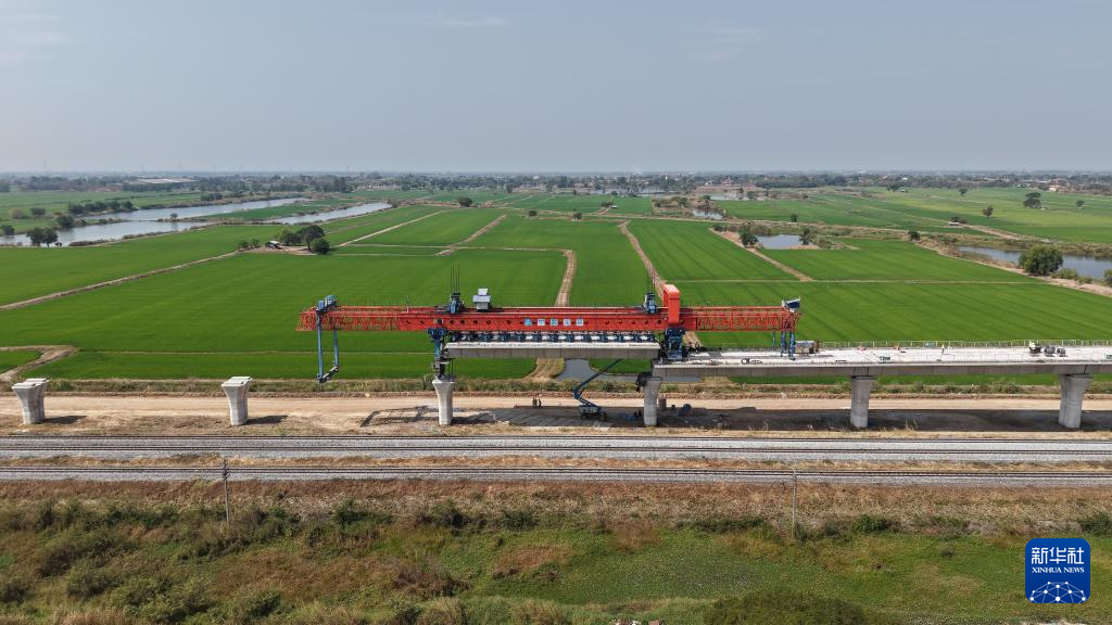 這是1月30日在泰國大城府拍攝的中泰高鐵項目4-3標段施工現(xiàn)場(無人機照片)。新華社記者 孫瑋彤 攝