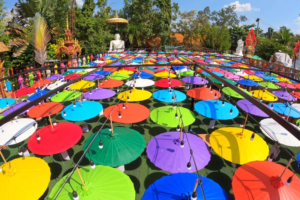 這是2022年11月9日在泰國(guó)清邁市博桑傘村拍攝的紙傘。新華社記者王騰攝