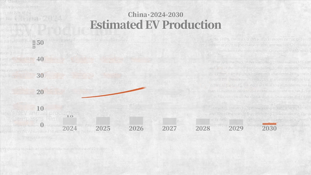 國(guó)際能源署也指出,到2030年,電動(dòng)汽車需要有4500萬(wàn)輛,才能實(shí)現(xiàn)氣候目標(biāo)。中國(guó)2024年的電動(dòng)汽車產(chǎn)量是1000萬(wàn)輛,只占該目標(biāo)的22%,即使保持高增長(zhǎng)速度,到2030年也不太可能“產(chǎn)能過(guò)?!薄?/p>
