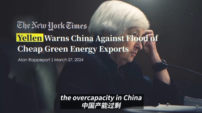 2024年3月,耶倫開始在不同場(chǎng)合反復(fù)提及“產(chǎn)能過(guò)?!币辉~,并且還在中國(guó)訪問(wèn)期間以“產(chǎn)能過(guò)?!睘橛芍肛?zé)中國(guó)新能源產(chǎn)業(yè)。當(dāng)年5月,美國(guó)便立即加征了對(duì)華新能源產(chǎn)品的關(guān)稅。