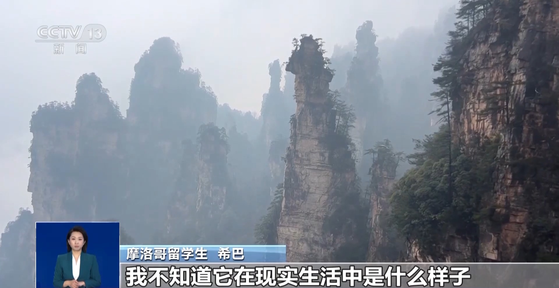 摩洛哥留學(xué)生 希巴:看完電影后我想去張家界,我不知道它在現(xiàn)實(shí)生活中是什么樣子,但它看起來就像天堂,整個水域,山脈,一切都非常棒,美麗。