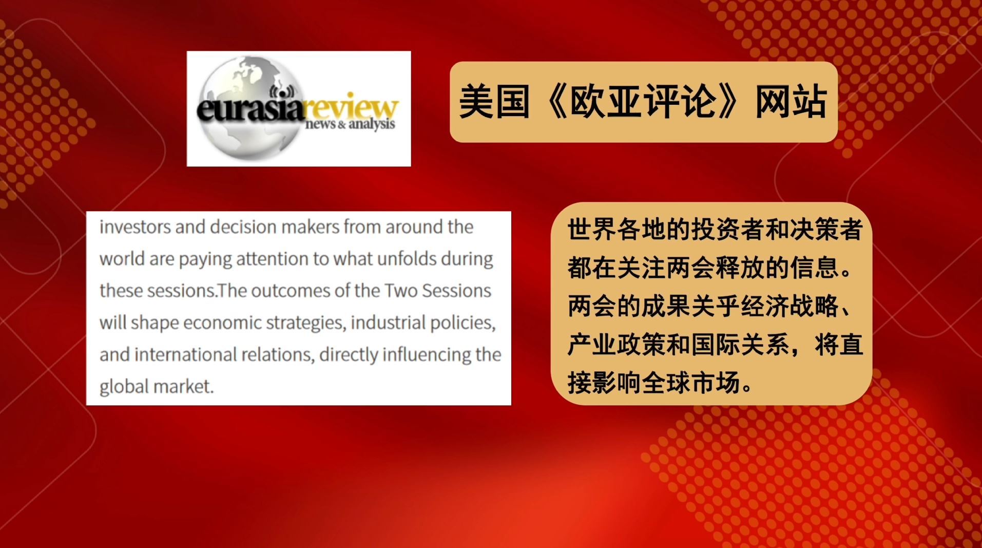 多家外國媒體紛紛用“全球性的重要意義”“直接影響全球市場”“全球的風(fēng)向標(biāo)”“全球感受到兩會的深遠(yuǎn)影響”這些描述,對中國兩會對世界的重要性給予高度肯定。