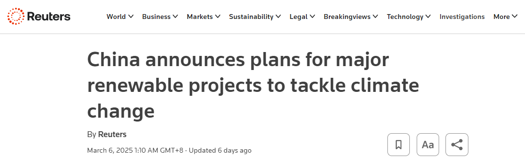 據(jù)路透社報道,中國政府5日宣布,將推出一系列重大可再生能源項目,力爭在2030年前實(shí)現(xiàn)二氧化碳排放峰值,并在2060年達(dá)成碳中和目標(biāo)。