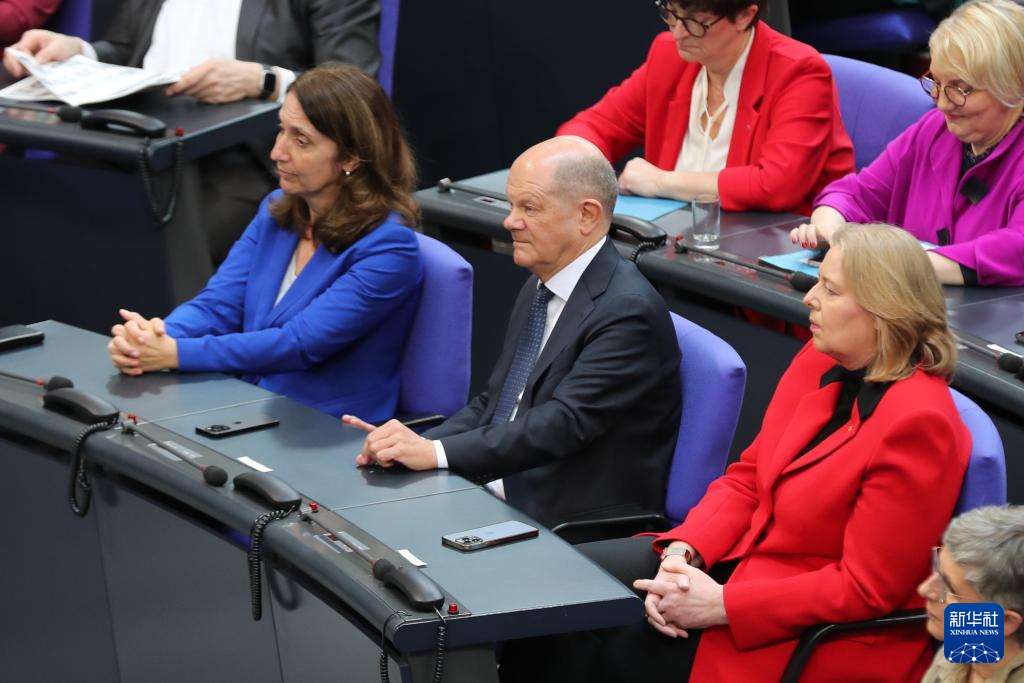 3月25日,在德國柏林,朔爾茨(中)出席新一屆德國聯(lián)邦議院首次全體會(huì)議。新華社記者 杜哲宇 攝