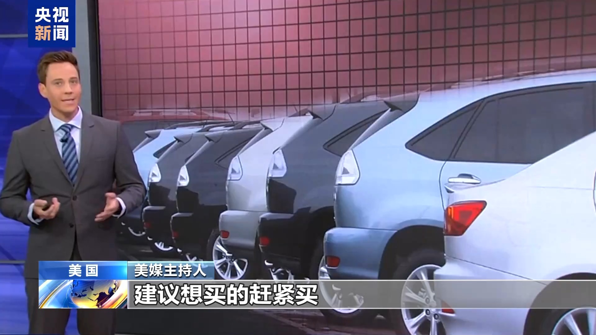 美媒主持人:我們先從汽車說起,建議想買的趕緊買。目前美國對所有非美國組裝的車輛征收25%關稅,這類車輛占市場總量的46%。但請注意,美國本土組裝的汽車同樣會漲價,因為這些車輛的部分零部件產自海外,而零部件也面臨關稅。
