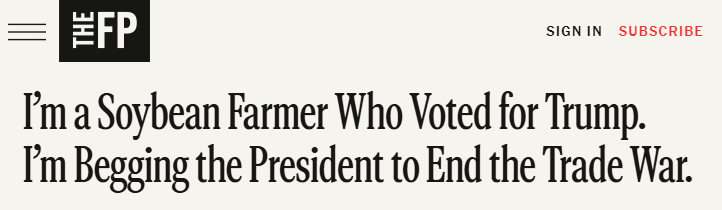 近日,拉格蘭德在The Free Press刊文表示,這場不斷升級的貿(mào)易戰(zhàn)對美國豆農(nóng)來說是個沉重打擊,因為中國是其最大的海外市場。對于許多美國大豆種植戶來說,這仿佛是2018年噩夢般場景的重現(xiàn)。那是特朗普總統(tǒng)的第一個任期,其采取的關(guān)稅措施使美國農(nóng)業(yè)損失了260億美元,僅大豆產(chǎn)業(yè)就損失了近200億美元。