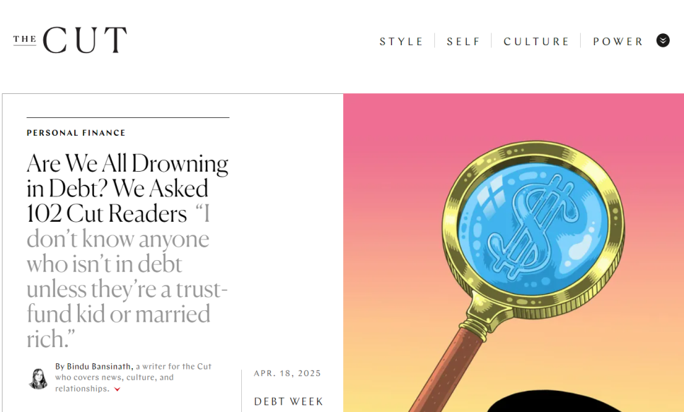 The Cut調(diào)查發(fā)現(xiàn),多數(shù)受訪者因信用卡過度消費而欠債,最常見的債務(wù)范圍在2.1萬美元至5萬美元之間。高利率的信用卡債務(wù)讓許多人陷入“以債養(yǎng)債”的惡性循環(huán),他們用“利息的倉鼠輪”來形容其背負債務(wù)。他們借新債還舊債,利息卻像滾雪球般越積越多,只能永無休止地償還最低還款額。