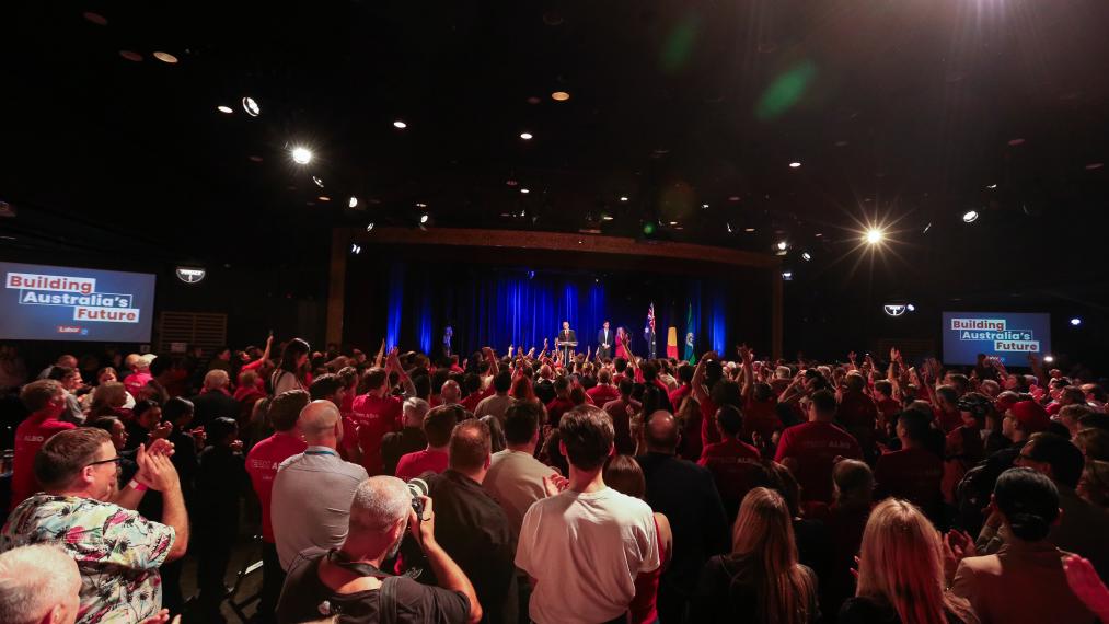 5月3日,在澳大利亞悉尼,工黨支持者在競選集會(huì)上慶祝勝利。新華社記者馬平攝