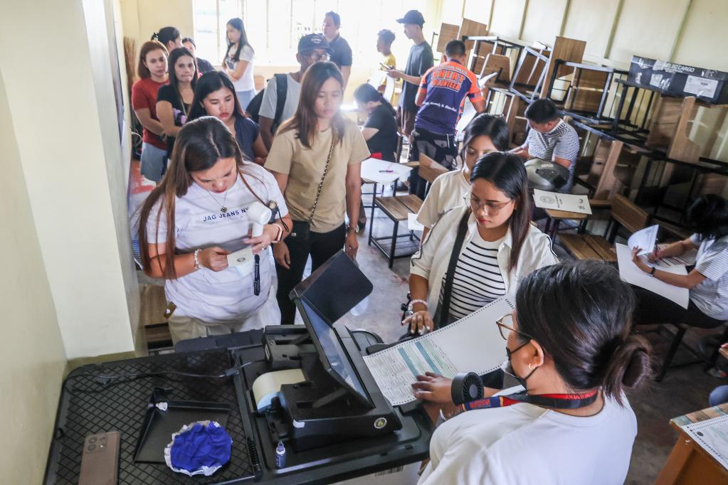 5月12日,在菲律賓奎松市,選民在投票站內(nèi)參加投票。新華社發(fā)(烏馬利攝)