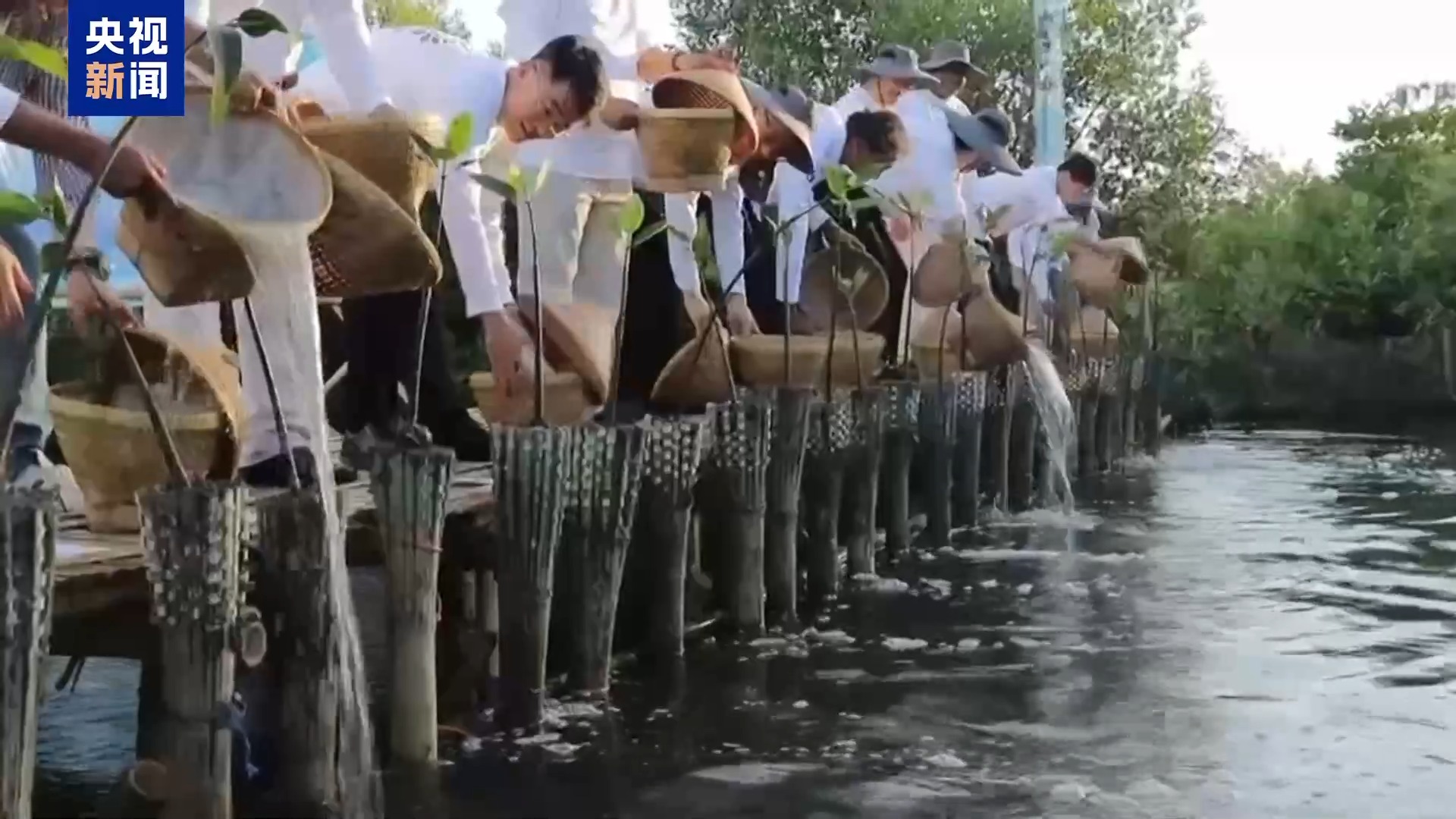 就在記者探訪的當(dāng)天,又一批紅樹(shù)苗被種入沿海灘涂。這樣的生態(tài)投入也帶來(lái)了民生收益,周邊居民有了新的就業(yè)機(jī)會(huì),漁業(yè)資源也逐漸恢復(fù),越來(lái)越多珍稀野生動(dòng)物在此安家。