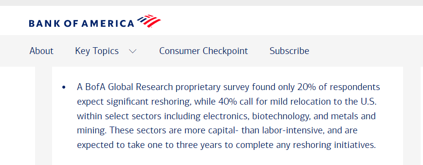 美國美銀證券(BofA Securities)6月發(fā)布的最新報告指出,盡管美國政府以“保護本土企業(yè)、保障就業(yè)”為由祭出關稅大棒,鼓勵企業(yè)將生產(chǎn)線遷回本土,但企業(yè)在重新布局全球供應鏈時,主要考量的因素已不再是成本,回流美國制造的意愿有限。
