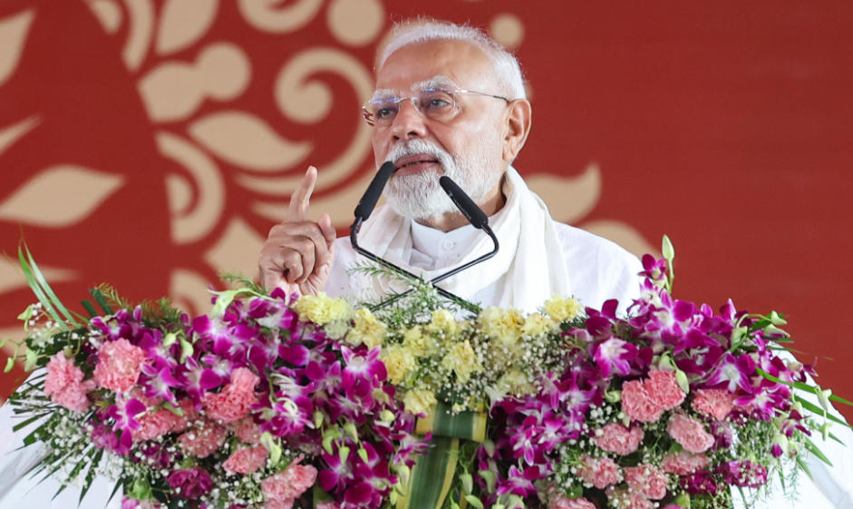 印度總理莫迪8月2日在印度北方邦城市瓦拉納西的一個集會上發(fā)表講話。(圖片來自莫迪辦公室網(wǎng)站)