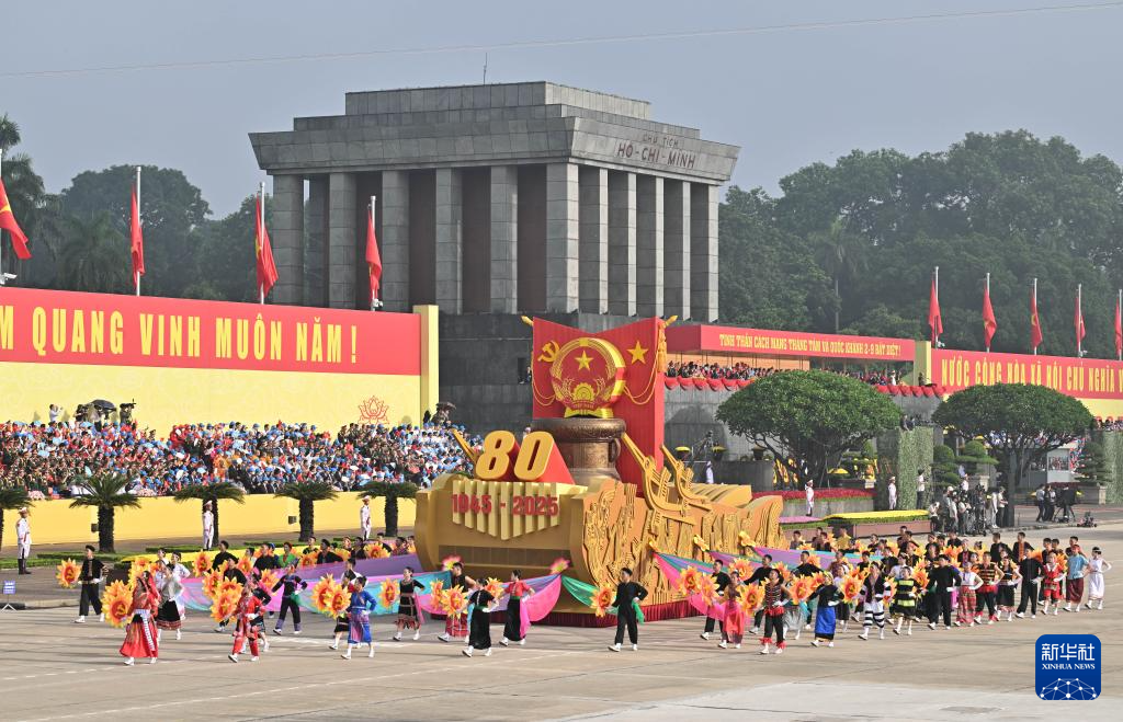 這是9月2日在越南河內(nèi)巴亭廣場拍攝的八月革命暨國慶80周年紀念活動現(xiàn)場。新華社記者 李響 攝