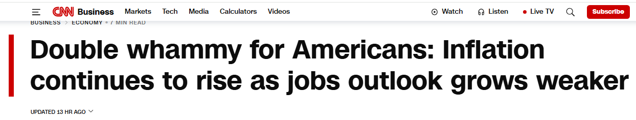 CNN報(bào)道稱,普通消費(fèi)者的感受最直接:日常生活開支越來越多,但收入增長跟不上物價(jià)漲幅,家庭財(cái)務(wù)壓力持續(xù)加大。