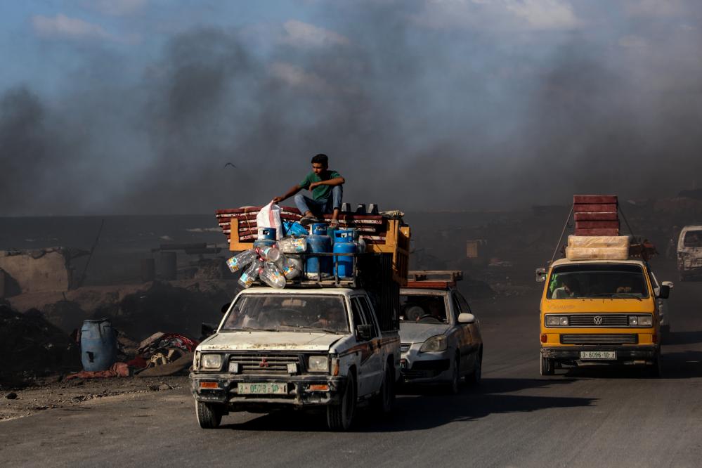 9月9日,巴勒斯坦民眾攜帶物品乘車從加沙地帶北部向南部撤離。新華社發(fā)(里澤克·阿卜杜勒賈瓦德攝)