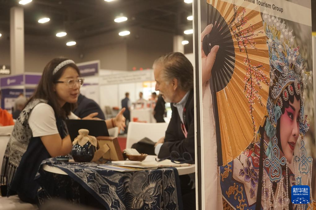 10月8日,在美國(guó)拉斯維加斯,人們?cè)?025年美國(guó)國(guó)際會(huì)議與獎(jiǎng)勵(lì)旅游展的中國(guó)展區(qū)參觀。 新華社發(fā)(曾慧攝)
